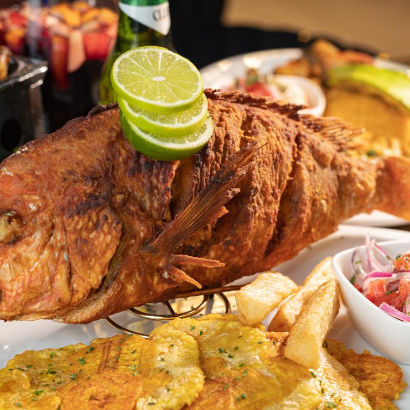 Pargo Frito Ave Maria/ Deep Fried Whole Snapper with seafood mix sauce